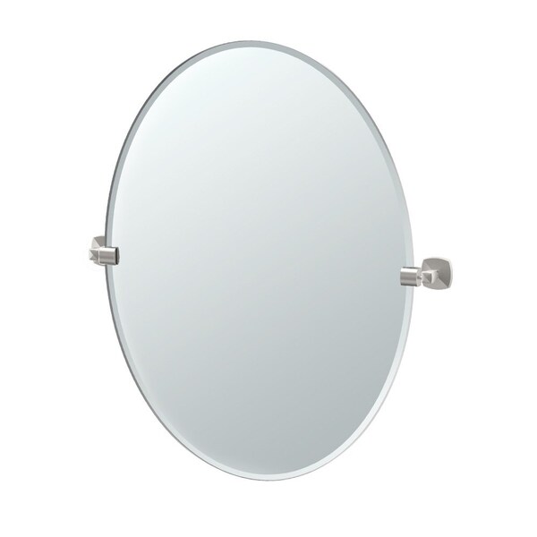 Jewel 32" Frameless Oval Mirror, Satin Nickel