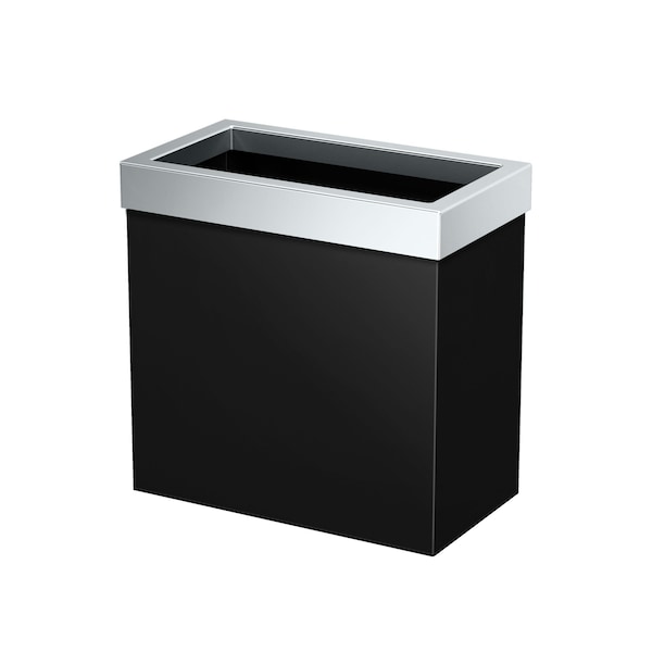 Modern Rectangular 3 Gal. Wastebasket, Matte Black/Chrome Lid