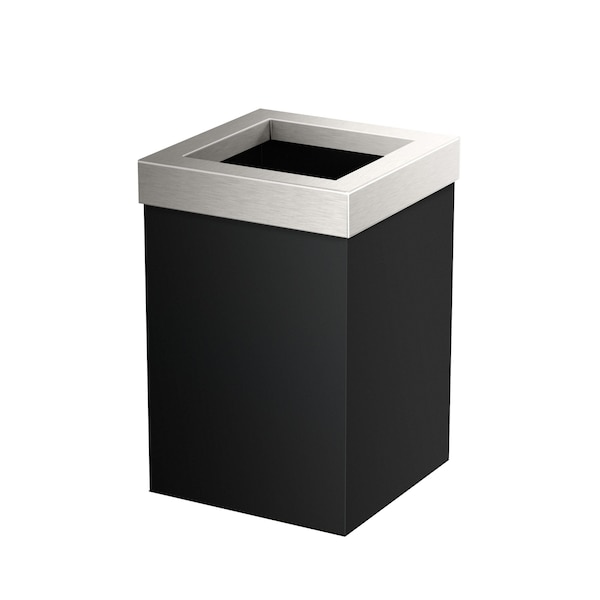 Modern Square 3 Gal. Wastebasket, Matte Black/Satin Nickel Lid
