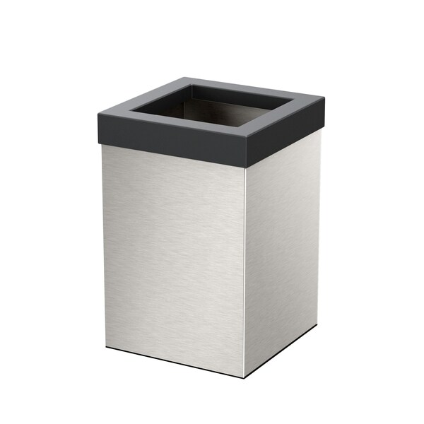 Modern Square 3 Gal. Wastebasket, Satin Nickel/Matte Black Lid
