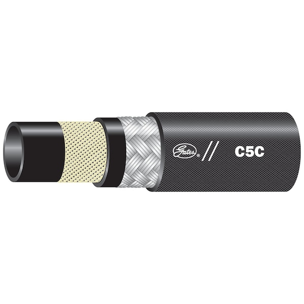 C5C hydraulic hoses are recommended for medium pressure hydraulic petroleum-based oil lines in impulse applications, lube oil; air and water in applications such as air brakes, power steering CAUTION: intended for heavy duty commercial vehicle use only, turbocharger oil supplies, tilt cab cylinders, transmission air cooler and filtration lines. Not recommended for gasoline or diesel fuel. Recommended For: Medium-pressure hydraulic petroleum-based oil lines in impulse applications, lube oil, air and water in applications such as air brakes, power steering CAUTION: Intended for heavy-duty commercial vehicle use only, turbocharger oil supplies, tilt cab cylinders, transmission air cooler and filtration lines. For use with C5 and C5X Field Attachable Couplings G34 Series. Meets or exceeds requirements of SAE 100R5 for traditional hydraulic applications, DOT FMVSS 106 74 Type AII and SAE J1402 Type AII for air brake applications -4 to -12. Avoid continuous use at maximum temperature concurrent with maximum working pressures. Product is sold by the FT.
