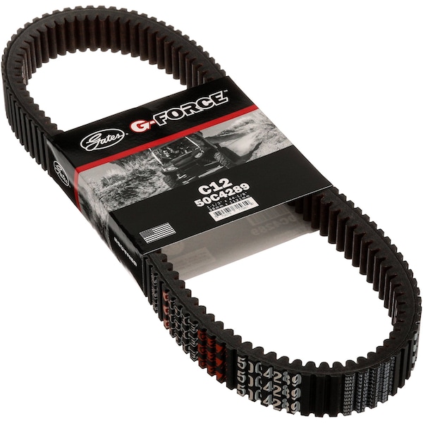 G-Force C12 belts were the first CVT belt utilizing carbon tensile cord for high modulus and extraordinary strength. This high-performance Neoprene and aramid fiber-loaded rubber belt o?ers Original Equipment technology. The advanced carbon tensile cords are surrounded by specially formulated adhesion gum to reduce edge cord pullout and increase belt life.