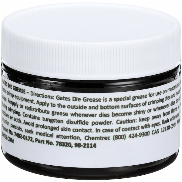 Gates Die Grease improves lubrication by decreasing friction & wear; This grease has state of the art premium plus, water-resistant grease; Infused w/ 99.9% pure Tungsten Disulfide