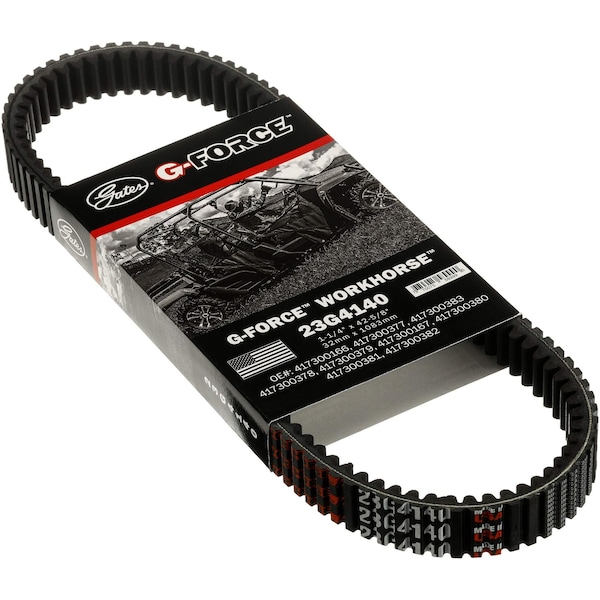 G-Force WorkHorseTM Our newest Gates G-Force WorkHorse CVT belt, is engineered to handle the toughest tasks and trails, optimized for vehicles with engines less than 800cc.