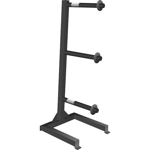 This sturdy and convenient rack stores three reels of hose.