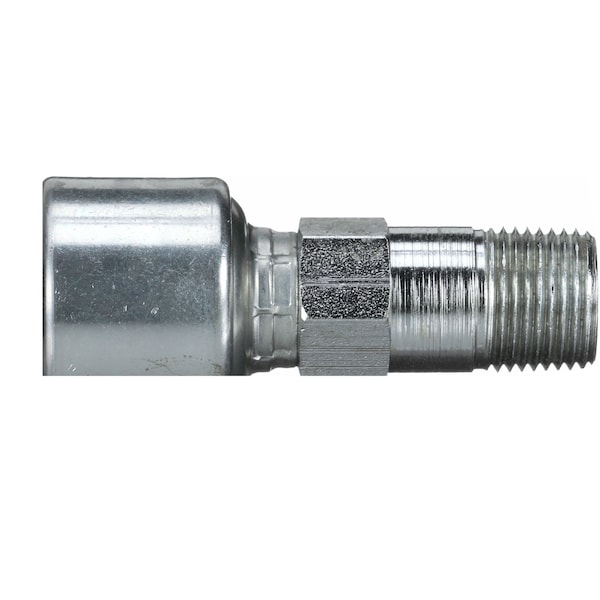 The patented "C" insert pre-assembled MegaCrimp coupling gives world-class, leak-proof performance. It is designed with a patented "C" insert attached to the ferrule that accommodates hose of different constructions and wall thicknesses. The insert's design ensures crimping forces are evenly distributed to form a concentric seal. The "C" insert simplifies inventory requirements since one MegaCrimp coupling size can accommodate various hose outside diameters, on both one- and two-wire braid hydraulic hose. For use with J2AT Jack Hose and special high-pressure applications.
