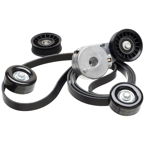 Designed for convenience, easy parts sourcing and reduced customer comebacks; Includes serpentine belt with premium EPDM construction, tensioner, applicable idler pulleys and applicable tensioner hardware; Meets or exceeds OE standards in form, function and fit; NOTE: Kit contents vary depending on specific needs of vehicle kit application