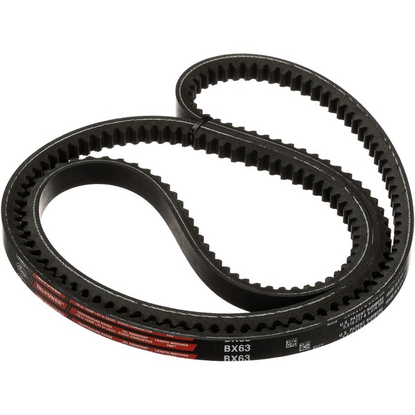 Gates Tri-Power V-Belts are built for superior performance on heavy-duty drives of classical cross-section. The raw edge construction and special notch design makes the Tri-Power belt especially suited for drives requiring small diameter pulleys and back idlers. The patented ethylene EPDM compound construction allows the belt to resist cracking and handle extreme temperatures.