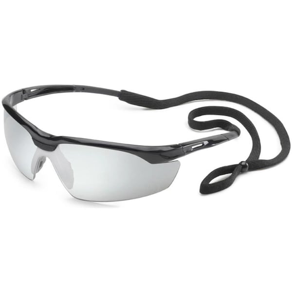Black Silver Mirror Conqueror Safety Glasses with Retainer