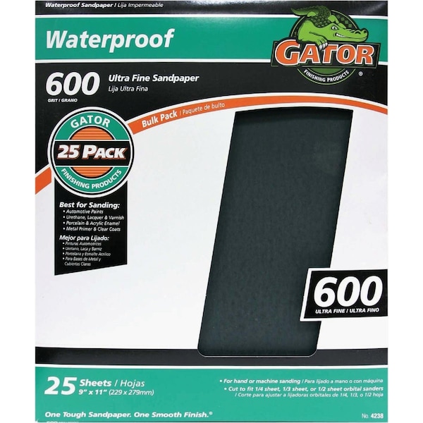 Waterproof 9''x11'' 600 Grit Ultra Fine Sandpaper, 25PK