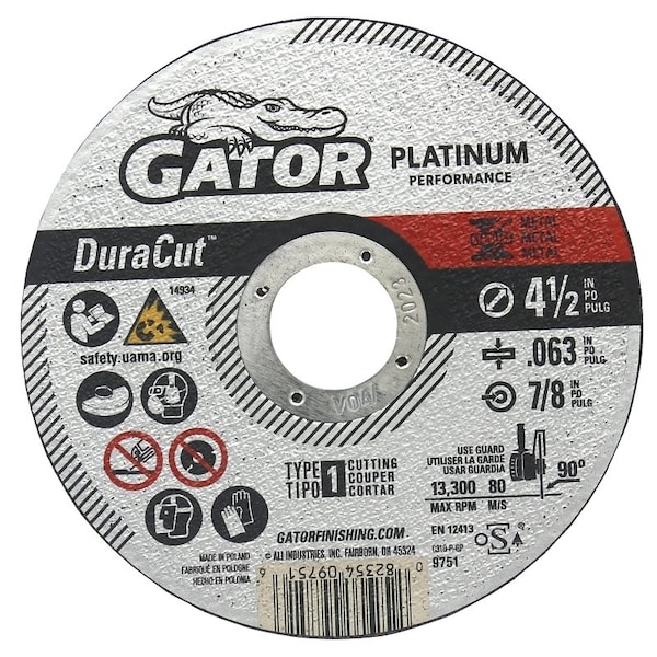 Gator blade type 1 metal cutting wheels are designed when thin cuts are required on ferrous metals, steel and alloys. Offered in the most popular sizes for various grinders and saws.