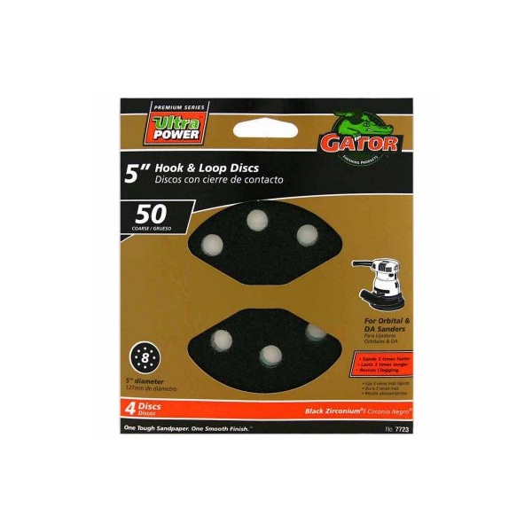 Gator Grit, Power Plus, 4 Pack, 5 x 8 Hole, 50 Grit, Hook Loop Sanding Disc