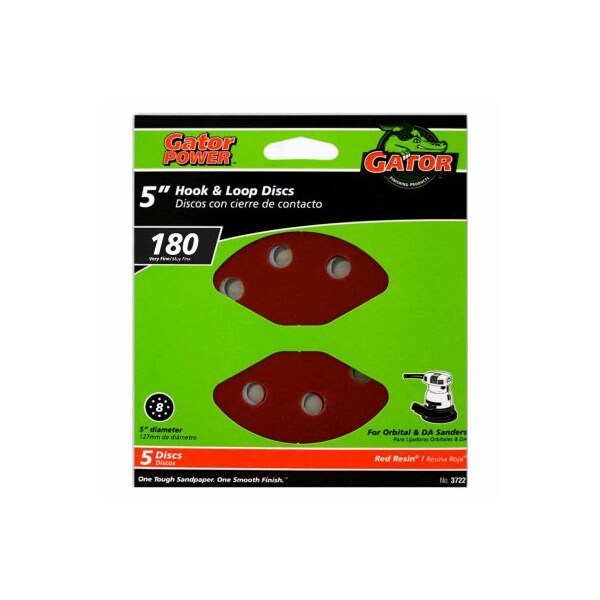 GatorGrit, 5 Pack, 5, 180 Grit, 8 Hole Vented Sanding Disc, Fits 8 Hole Random Orbit Sanders