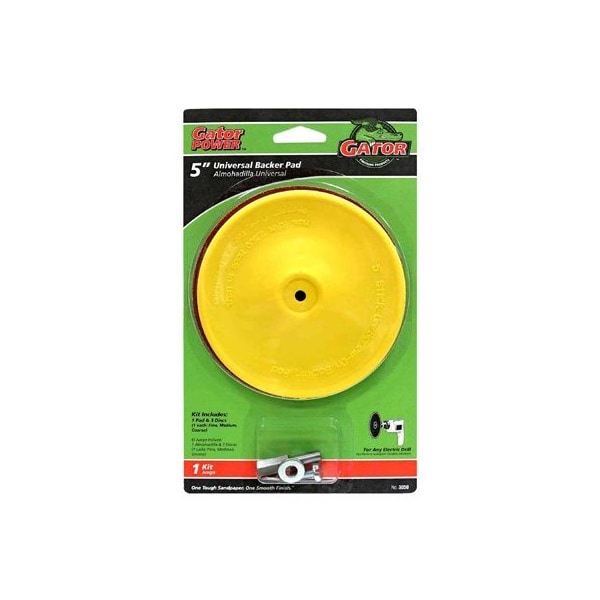 Gator, 5, StickOn Sanding Discs Kit, Universal Pad For Both StickOn ScrewOn Discs, Flexible Pad For Flat Or Contoured Surfaces, For Use On Any Electric Drill, 14 Arbor, Kit Includes 1 Universal Backer Pad 3 Sanding Discs