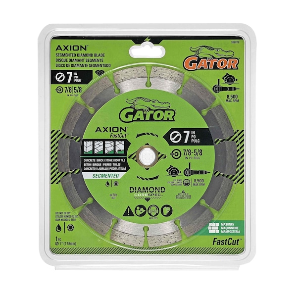 Gator segmented rim diamond saw blade is ideal for aggressive cutting of concrete, brick, block, stone, and stucco.