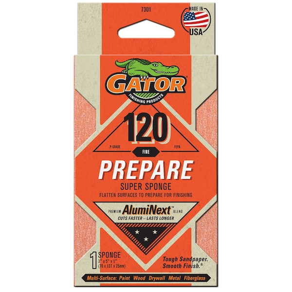 AlumiNext Sandpaper Prepare Super Sponge, 120 Fine Grit