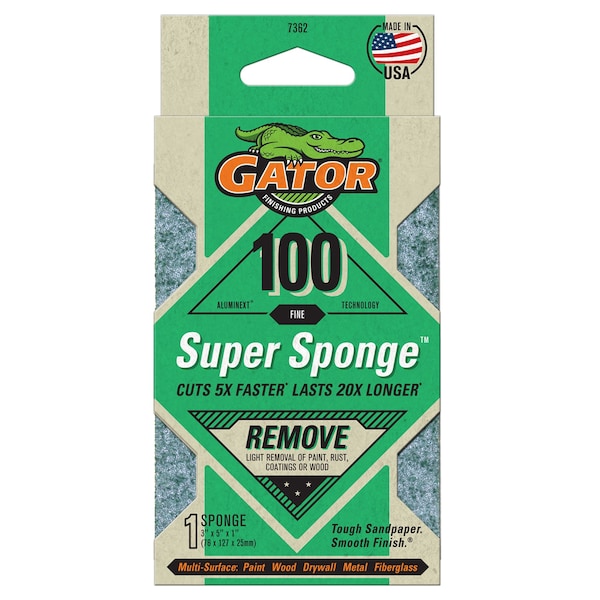 Made from Premium AlumiNext Sandpaper fused to a durable foam core for increased performance and comfort while sanding. Cuts 5x faster and lasts 20x longer than conventional glue-on-grit foam sponges. Multi-surface use: wood, painted or coated surfaces, metal, fiberglass and wall compounds.