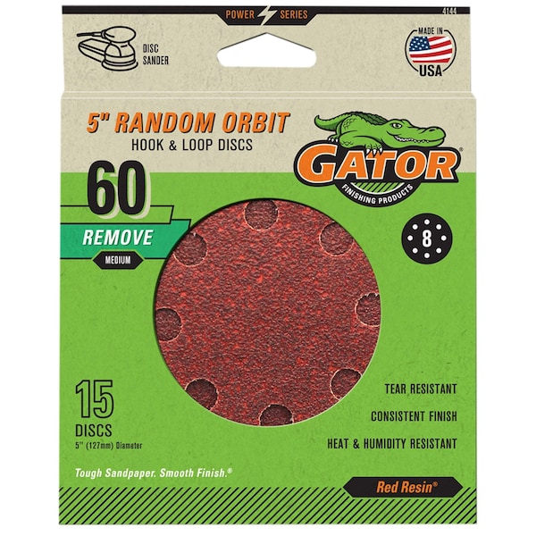 Gator Grit Primal 5 in. Hook and Loop Sanding Discs, 60 Grit, Medium, 15PK