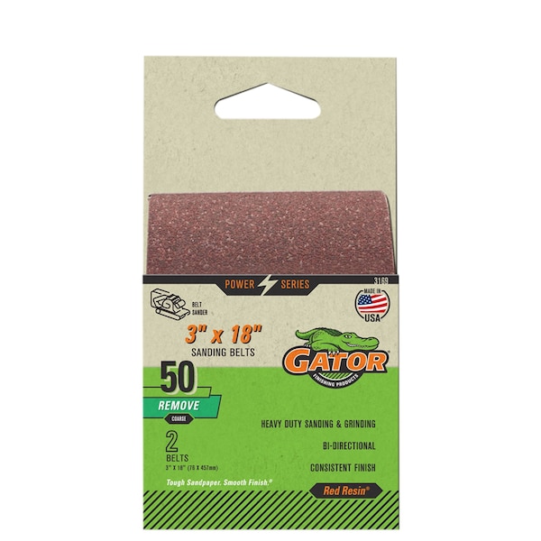Red Resin 3 x 18 in. Sanding Belt, 50 Grit, Coarse, 2PK