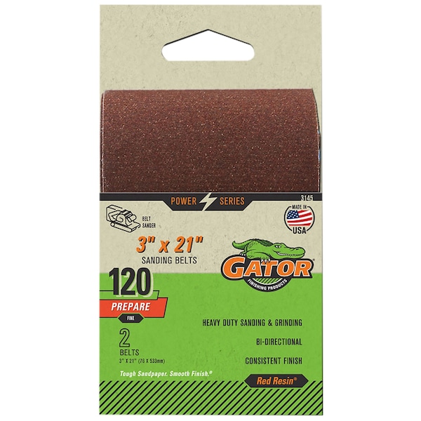 Built to withstand heat & humidity for longer product life and sustained performance. Gator sanding belts are made with a durable cloth backing that resists tearing and delivers a consistent finish.