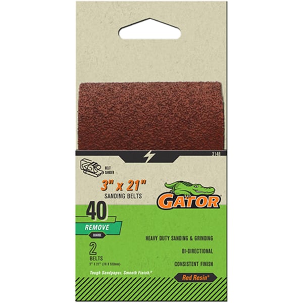 Red Resin 3 x 21 in. Sanding Belt, 40 Grit, Coarse, 2PK
