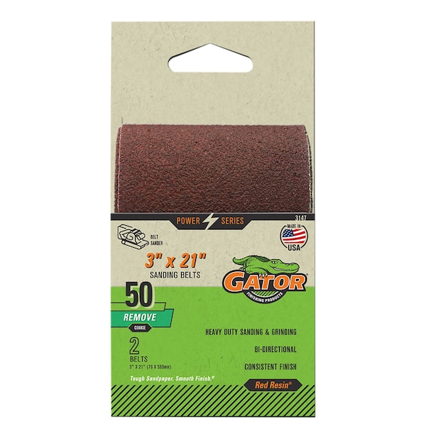 Red Resin 3 x 21 in. Sanding Belt, 50 Grit, Coarse, 2PK