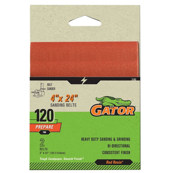 Red Resin 4 x 24 in. Sanding Belt, 120 Grit, Fine, 2PK