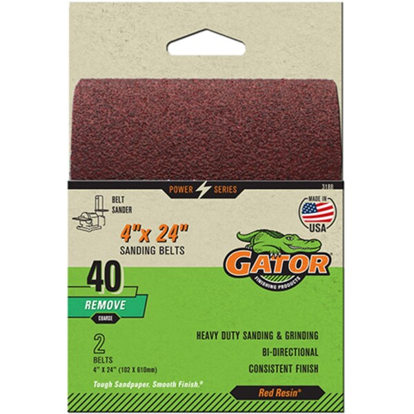 Built to withstand heat & humidity for longer product life and sustained performance. Gator sanding belts are made with a durable cloth backing that resists tearing and delivers a consistent finish.