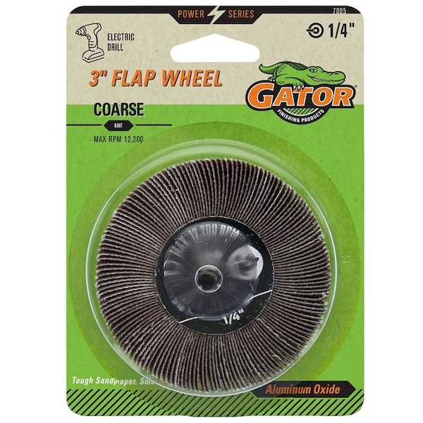 Gator Flap Wheel, Drill Mounted, 3 in Diameter, Coarse Grit Grade, Brown, Applicable Materials: Metal, Wood
