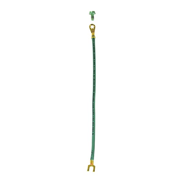 GB offers a convenient grounding accessories line of products suitable for most job requirements. This grounding pig tail is made from 12 AWG stranded wire. It measures 8 inch length. One end is terminated with a bare fork terminal. The other end is a captured screw.