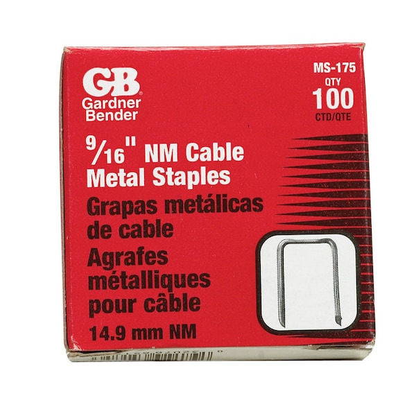 These 1-1/4 inch x 9/16 inch Graphite Metallic Steel Staples are designed to secure 14/3, 12/3 and 10/3 NM cables. These strong steel staples feature burr free, sharper tips so the legs drive in straight without splitting wood and are engineered with recessed heads to protect cable jackets. Virtually oil free for cleaner handling and manufactured to contractor preferred length. Designed to be driven into wood with a hammer.