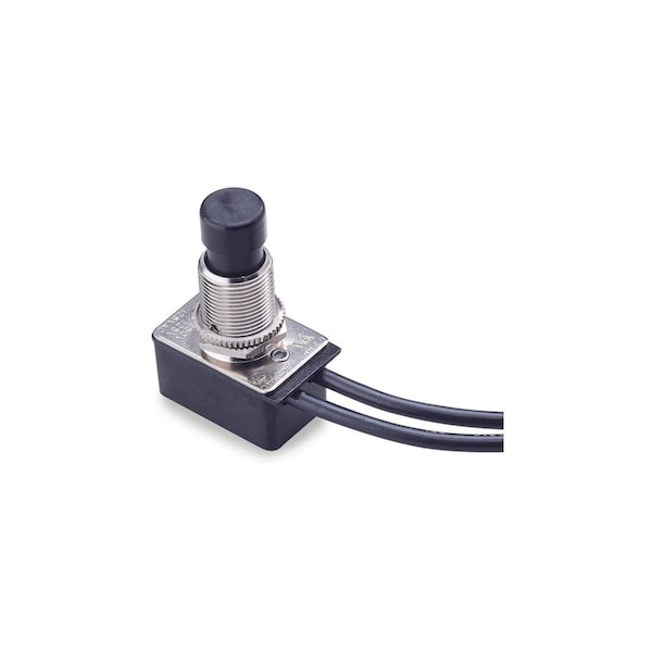 Pushbutton Switch, 4/8/10 A, 125/250 V, SPST, Lead Wire Terminal, Plastic Housing Material, Chrome