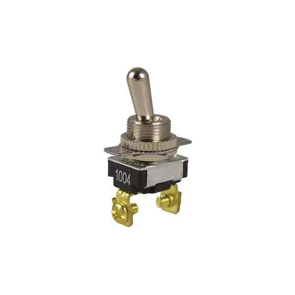 Toggle Switch, 120/240 VAC, SPST, Screw Terminal, Steel Housing Material Silver
