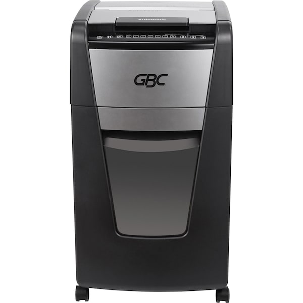 Spend less time shredding and more time on other tasks. GBC AutoFeed+ Super Cross-Cut Shredder takes the manual work out of shredding to make your day easier. Simply stack, shut and walk away. Stack sheets in the feeder for automatic shredding or manually feed sheets. Super cross-cut (P-4) shred style is perfect for shredding confidential or personal information. Shredder runs ultra-quietly to help minimize noisy disruptions in your office. Powerful induction motor with continuous runtime and large bin let you shred longer without stopping. Auto shred documents, paper clips and staples. Insert credit cards manually.