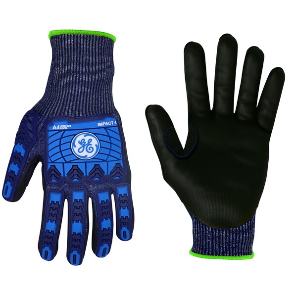GE Small 13ga Micro Foam Nitrile TPR Impact Cut Resistant Level 4 Glove. This is the GE Micro Foam Nitrile TPR Impact Cut Resistant Level 4 Glove with a 13 Gauge HPPE, Polyester, Glass Fiber, Steel Wire and Spandex Liner and a Black Micro Foam Nitrile Coating. Features a Reinforced crotch thumb and a longer cuff for better protection and comfort. It meets EN388-4X42D Standard and has CE certification.