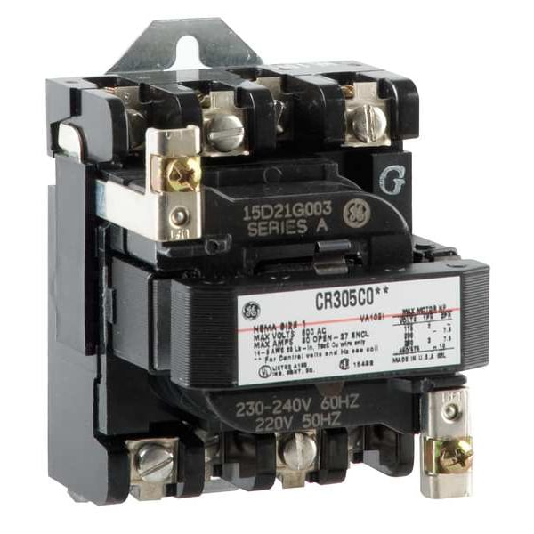 NEMA Magnetic Contactor, Auxiliary Contact Form 1NO, NEMA Enclosure Rating No Enclosure, NEMA Size 1, Coil Voltage 240V AC, Number of Poles 3, Full Load Current - Inductive 27 A, Reversing Capability Non-Reversing, Overall Height 3.94 in, Overall Width 3.06 in, Series CR305, Number of Auxillary Contacts 1, Contactor Style NEMA, Horsepower @ Three Phase - 240V AC 7 1/2 hp, Horsepower @ Three Phase - 480V AC 10 hp, Phase Three, Horsepower @ Three Phase - 600V AC 10 hp