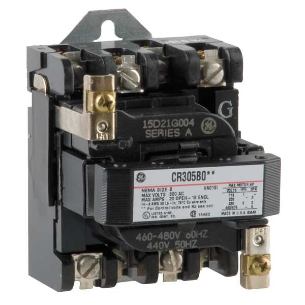 NEMA Magnetic Contactor, Auxiliary Contact Form 1NO, NEMA Enclosure Rating No Enclosure, NEMA Size 0, Coil Voltage 480V AC, Number of Poles 3, Full Load Current - Inductive 18 A, Reversing Capability Non-Reversing, Overall Height 3.94 in, Overall Width 3.06 in, Series CR305, Number of Auxillary Contacts 1, Contactor Style NEMA, Horsepower @ Three Phase - 240V AC 3 hp, Horsepower @ Three Phase - 480V AC 5 hp, Phase Three, Horsepower @ Three Phase - 600V AC 5 hp