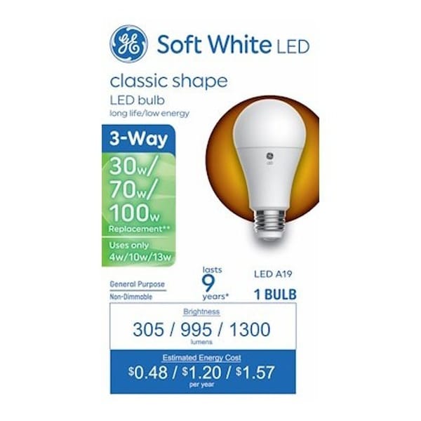 Basic Series Light Bulb, Three-Way, A19 Lamp, 100 W Equivalent, DC Medium Lamp Base