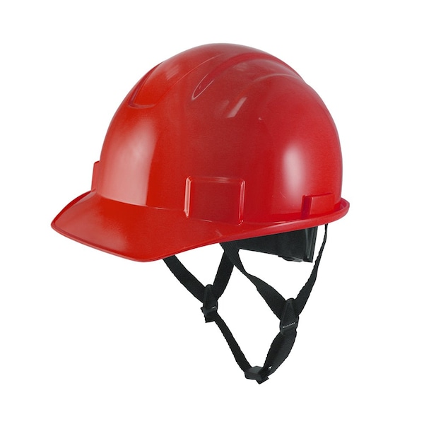 Cap Style Non-Vented Hard Hat, 4-Point Adjustable Ratchet Suspension, Red