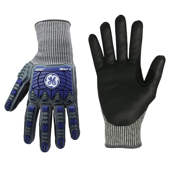 Large 18ga Foam Nitrile TPR Impact Cut Resistant Level 5 Glove. 18 Gauge HPPE, Basalt, Steel, Polyester and Spandex Liner and a Black Foam Nitrile Coating. Features a Reinforced crotch thumb and a longer cuff for better protection and comfort. Meets EN388-4X42E standard and has CE certification.