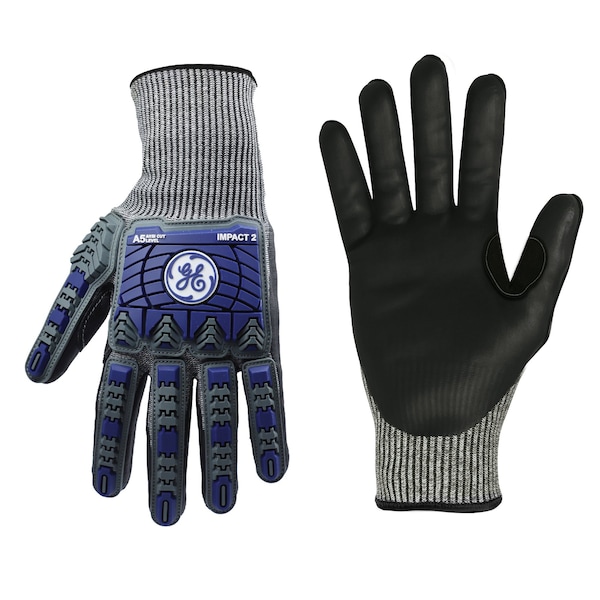 Extra Large 18ga Foam Nitrile TPR Impact Cut Resistant Level 5 Glove. T 18 Gauge HPPE, Basalt, Steel, Polyester and Spandex Liner and a Black Foam Nitrile Coating. Features a Reinforced crotch thumb and a longer cuff for better protection and comfort. Meets EN388-4X42E standard and has CE certification.