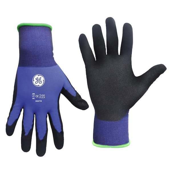 GE Small 21ga Sandy Nitrille Dipped Glove. This is a GE Cut Resistant Sandy Nitrille Dipped Glove with a 21 Gauge Nylon liner and a Black Sandy Nitrille Coating. It also has Touch Sceen Compatible. It also meets the EN388: 2016-2121X and CE certifications.