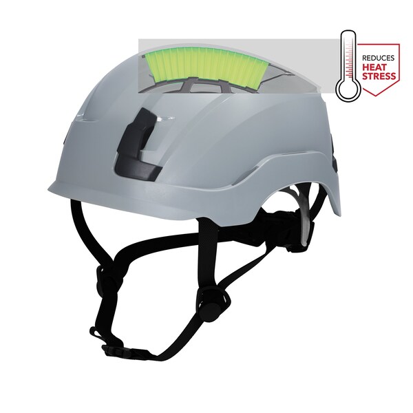 GE Gray Safety Helmet. This Is the GE Safety Helmet made with ABS. Cross Ventilation System, ensuring the most efficent cooling system. Lower profile than conventional safety helmets. Ultra-lightweight safety helmet providing greater comfort for all-day wear. Impact absorbing technology powered by Koroyd. Koroyd's KOR is 95% air, this enables lighter, smaller, faster protection, causing less fatigue. Array of accessories, 10 slots for accessories. Adjustable ratchet system. Washable four points adjustable chin strap. Washable memory foam sweat-wicking band & Antimicrobial padding. 360 deg. Fit system adjustability up or down. It Meets ANSI ISEAZ89.1-2014 TYPE 1 CLASS E Standards.