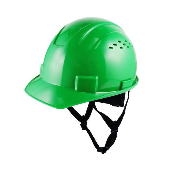 Vented Full Brim Hard Hat, 4-Point Adjustable Ratchet Suspension, Green