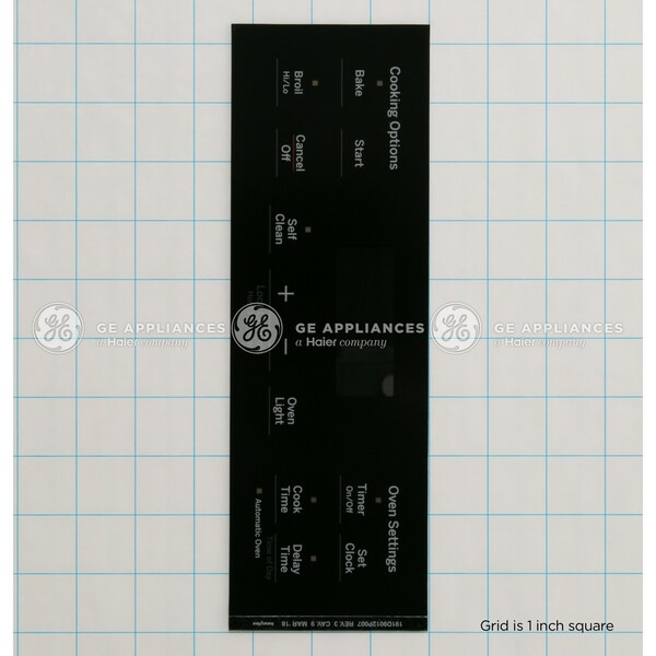 WB07X26647 GE Oven Faceplate Graphics BK