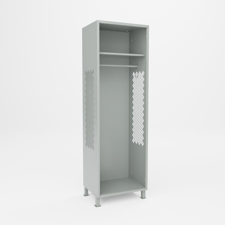 Athletic Gear Locker, 24inWx72inHx24inD, Perforated Door, Top Cabinet, Foot Locker, 4inLegs, Putty