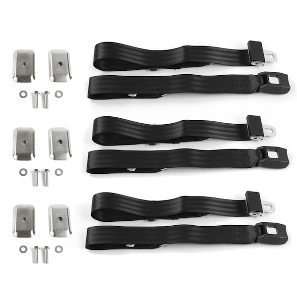 Ford 1935-1940 Standard 2 Point Black Lap Bench Seat Belt Kit with Bracketry - 3 Belts