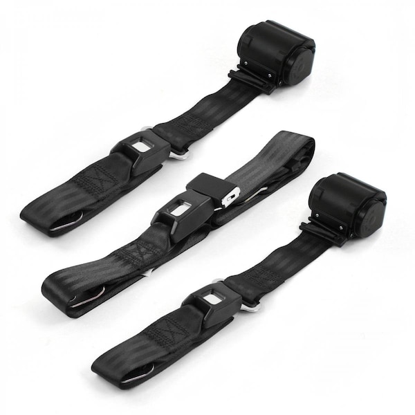 Standard 2 Point Black Retractable Bench Seat Belt Kit for Chevy FS Blazer 1969-1972 - 3 Belts