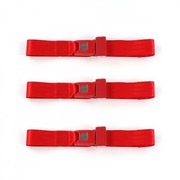 Standard 2 Point Red Lap Bench Seat Belt Kit with 3 Belts for 1968-1974 Chevy Nova