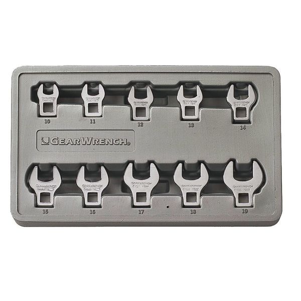 (10) Crowfoot Wrench Set: (1)10mm, (1)11mm, (1)12mm, (1)13mm, (1)14mm, (1)15mm, (1)16mm, (1)17mm, (1)18mm, (1)19mm; (1) Blow Mold Tray